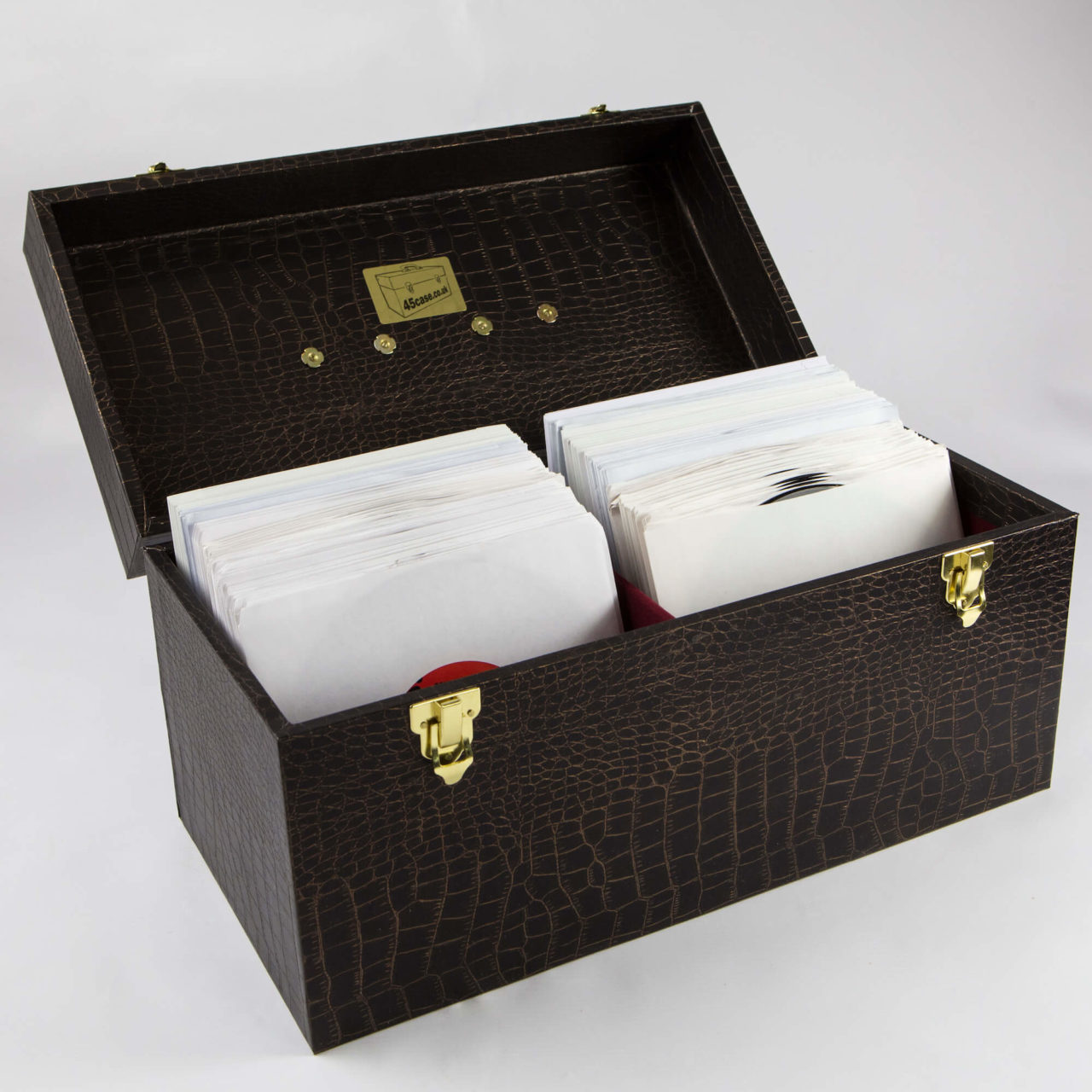 Available in either crocodile skin or matt finishes and in single or double compartment sizes holding 60 or 120 7″s each, you can peruse a few of the options below and make your purchase from the Jazzman website.