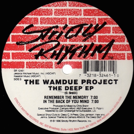 Chris Brann has been producing house tracks since what seems like forever. Under his Wamdue Kids (sometimes Wam Kidz) moniker, he’s responsible for one of Strictly Rhythm’s biggest chart successes, ‘King Of My Castle’. Ironically, the original version (that appeared on 1998’s Program Yourself LP and the EP with the same name) was a downtempo album cut. The well known housy chart topper is Italian DJ/producer Roy Malone’s take on it. ‘Three Toed Frog’ is signature Chris Brann 5am deepness with crunchy beats. B1’s ‘Remember The Memory’ seeks out even deeper territory.