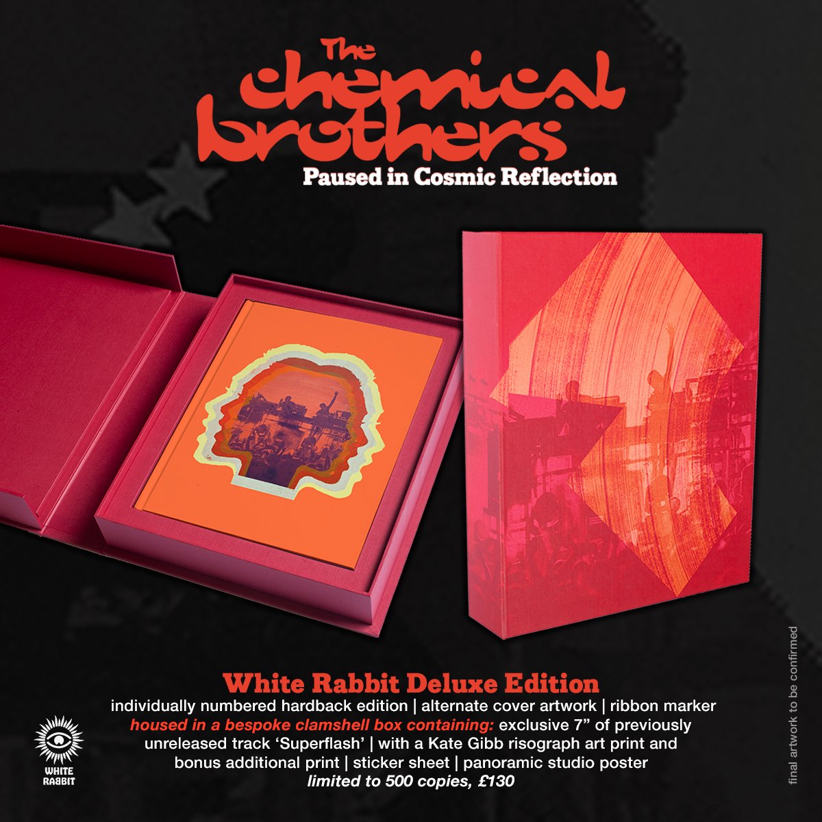 Written by The Chemical Brothers’ press officer, Robin Turner, Paused In Cosmic Reflection will examine their 30-year career through the duo’s perspective as well as interviews with collaborators including Noel Gallagher, Beck, Beth Orton and Erol Alkan. The book also features archival photos across its 336 pages.