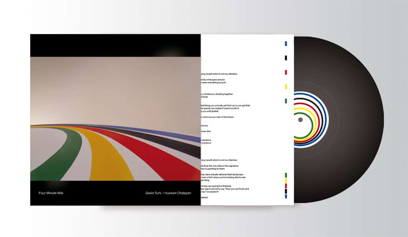 The very first time they met, at Turk’s studio, Chalayan interviewed Turk about his enduring preoccupation with the mythical status and identity of the Artist, with authorship and authenticity. When Chalayan came to edit the transcript of their conversation it suggested the lyrics of a song, and from that, the idea of a track called "Four Minute Mile" emerged, the duration fixed by the speed record famously broken by Roger Bannister, the tempo such that you could run or train to it.