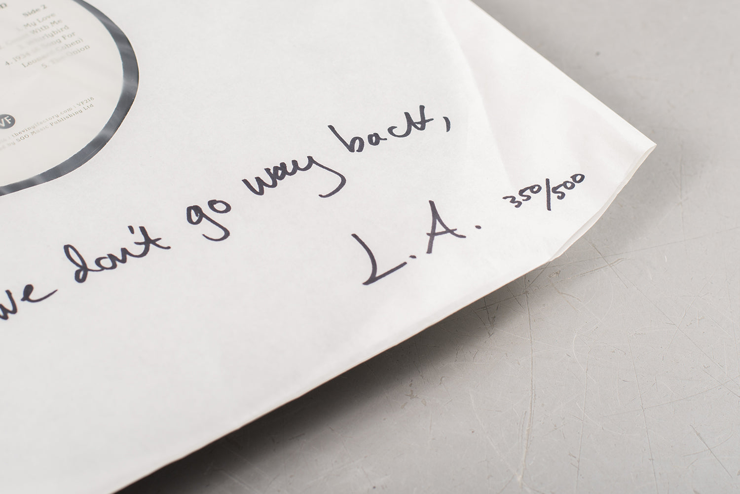 On each of the 500 inner sleeves, Lail has hand-written a unique lyric from the songs in the album. These lyrics have also been published by The Society Club into a limited edition lyric book for the release.